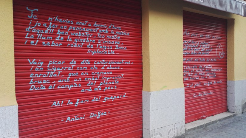 De los cuatro locales de la ciudad que acogerán estas charlas informales de expertos, uno está en Benimaclet, y no es otro que “La Murta, vins i tapes”, un local ubicado en una de las arterias del barrio -en el cruce de la calle Murta con Mistral- en el que, si pasáis cuando está cerrado, podéis deteneros a leer en sus persianas versos de Vicent Andrés Estellés, de Carles Salvador o de Antoni Defez.