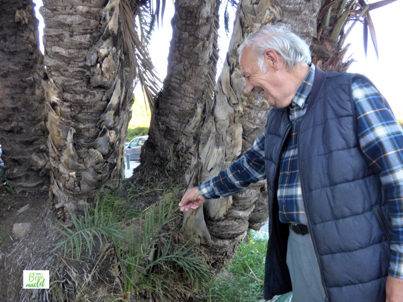 Junto a Miguel contamos cuántos brazos tiene esta gran palmera, pues sabe que tiene muchos pero nunca se había parado a enumerarlos. Nos salen un total de once y no deja de asombrarse, especialmente cuando lo compara con la “simple palmera de un solo ojo” que tenía en su casa.