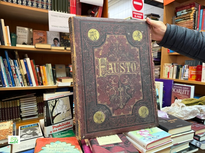 El tesoro de esta librería de segunda mano de Benimaclet es un ejemplar de gran tamaño del ‘Fausto’ de Goethe editado en 1878, que el suegro de Antonio se encontró en la basura y que por deferencia a él no ha puesto a la venta.