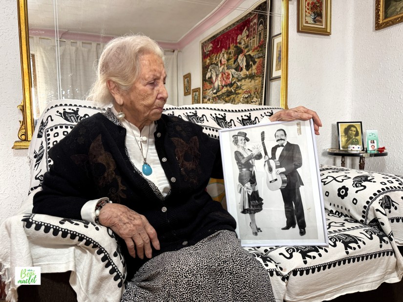 Cuando cumplió 100 años, sus nietos le regalaron un gran cartel con una foto suya vestida “un poco de mexicana” de cuando tenía 66 años bajo el nombre de ‘La Serrana’, que nos muestra con gran orgullo.